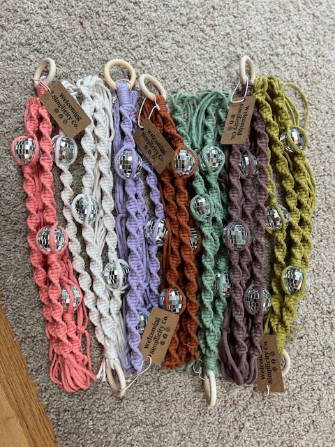 Introducing our Eco-Friendly Macrame Disco Ball Plant Hanger! Elevate your indoor greenery with a touch of boho glamor and fun . Crafted with care using recyclable macramé cord, this plant hanger embodies both elegance and environmental responsibility.